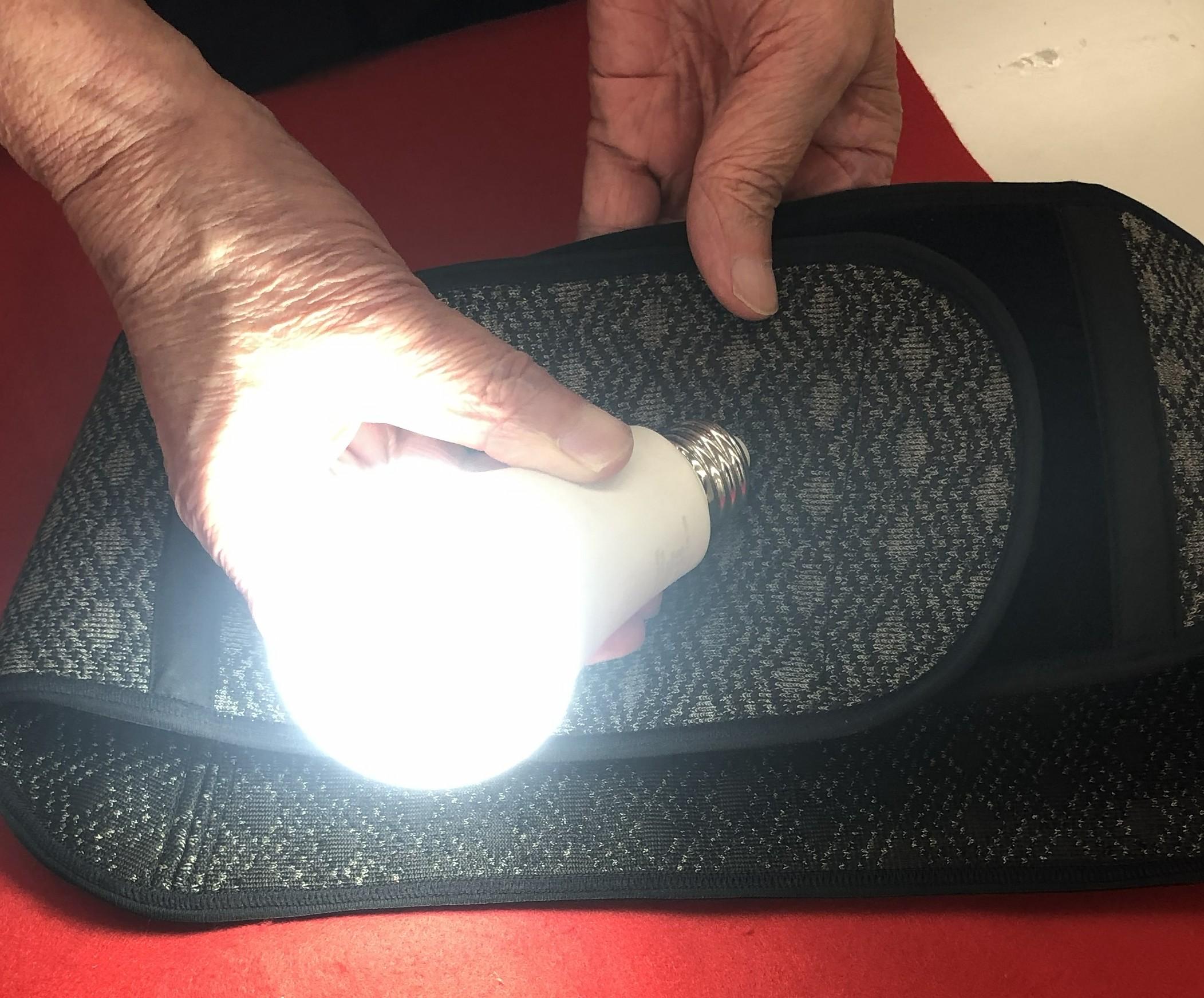 右の写真は、右手と左手の間を流れる生体電流を計っています(0.01μA)。左の写真は右手にTSUBOサポーターを持たせて生体電流を測っています(0.32μA)。TSUBOサポーターを持って計ったほうが生体電流の値が大きいことがわかります。同じく血流も増えていることが期待できます。